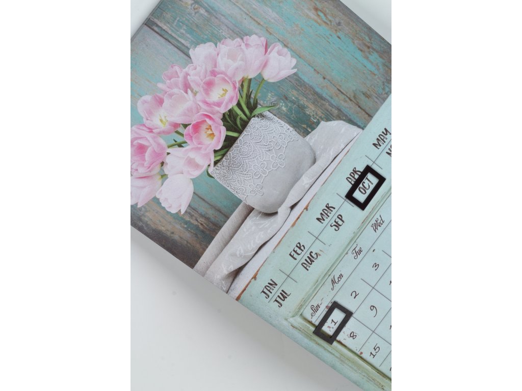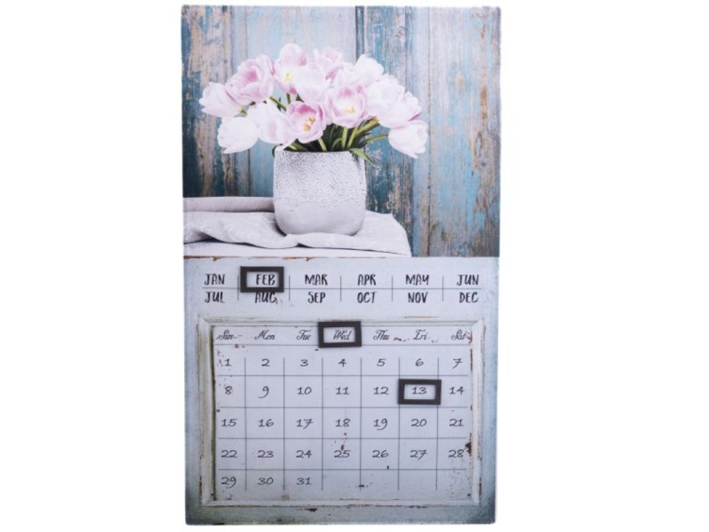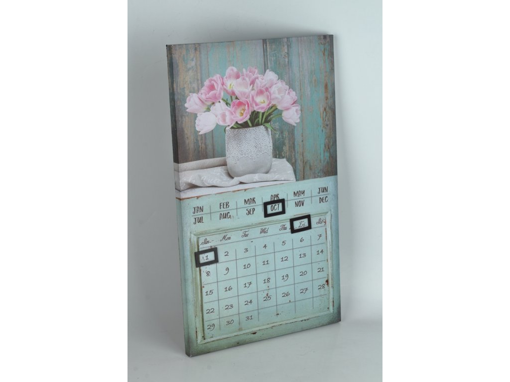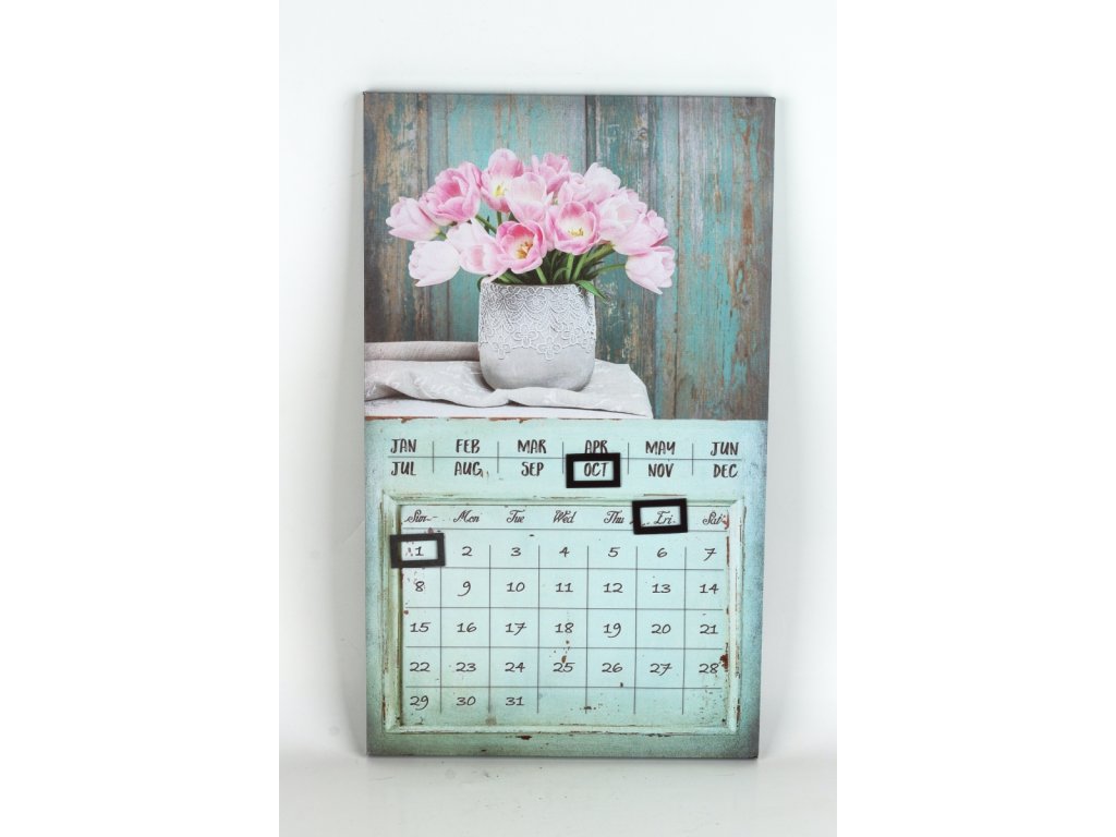 Nástěnný kalendář s magnety 30 x 50 x 1,8 cm růžové tulipány na mentolové