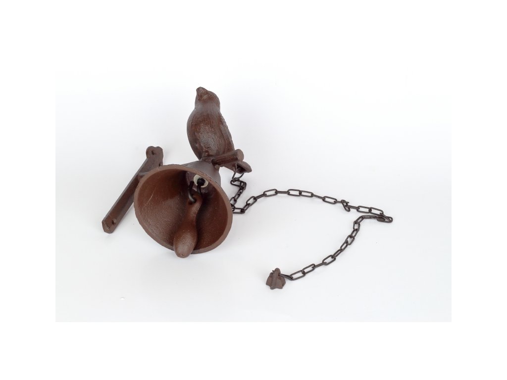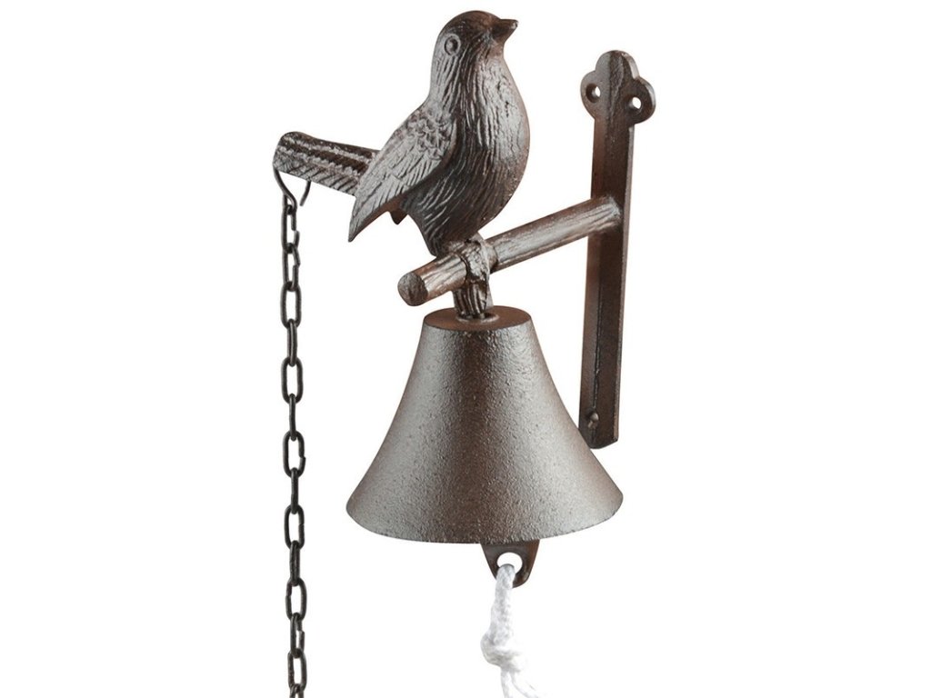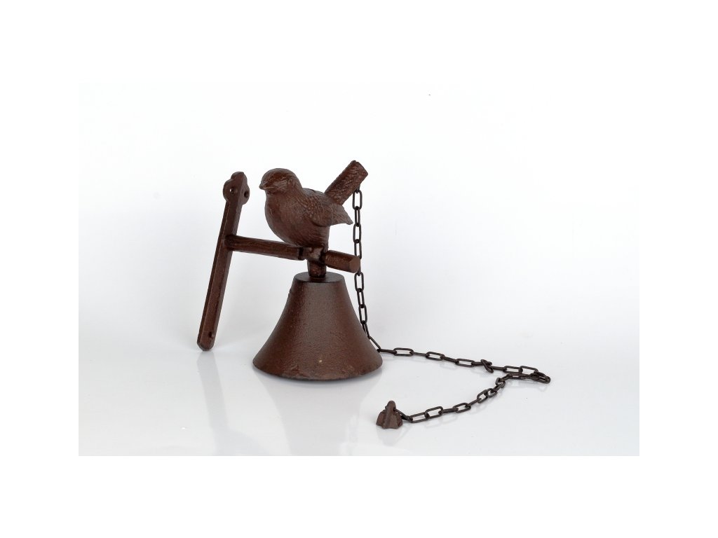Nástěnný litinový zvon s ptáčkem 11,9x14,2x18,5cm
