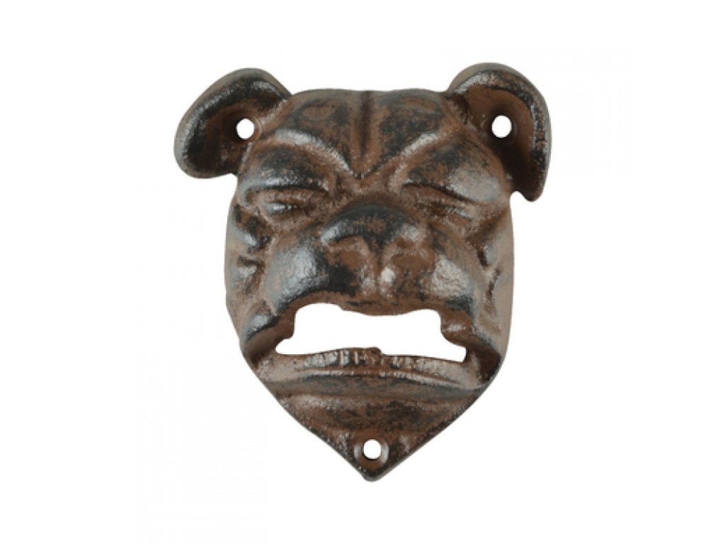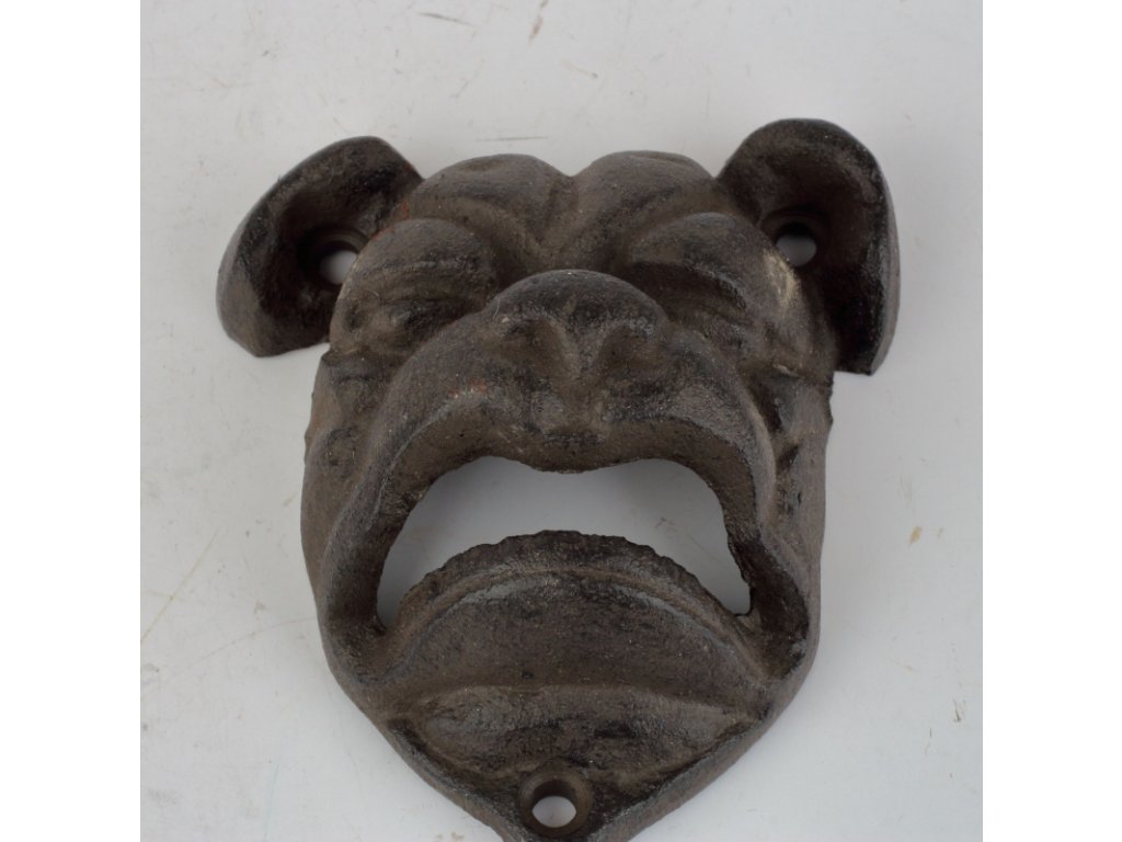 Nástěnný otvírák na láhve buldog litina 8x8cm