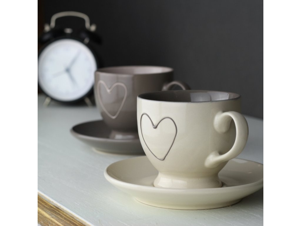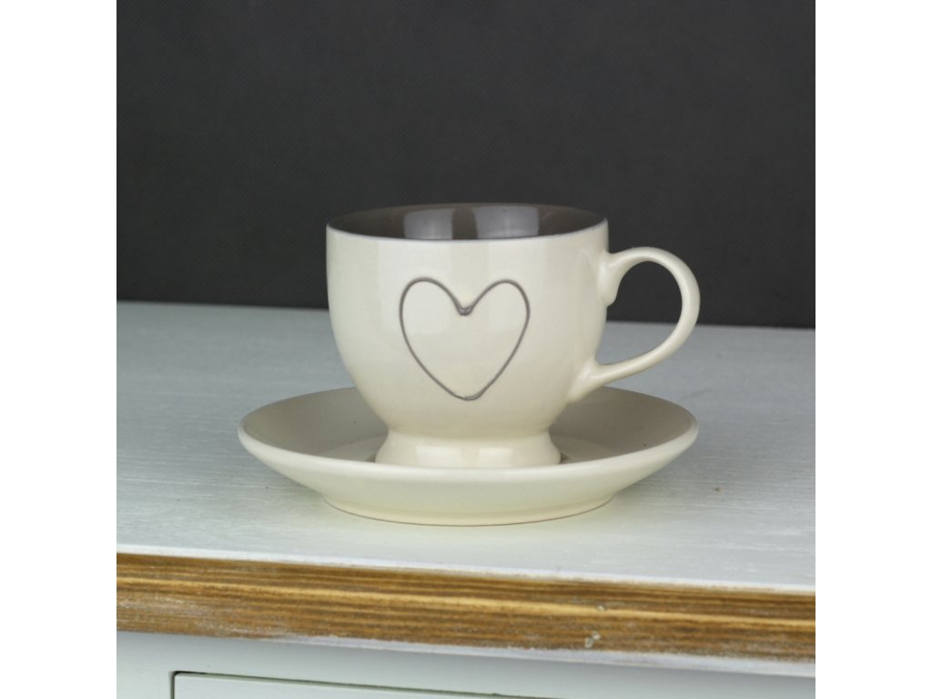 Šálek s podšálkem krémové srdce 200ml