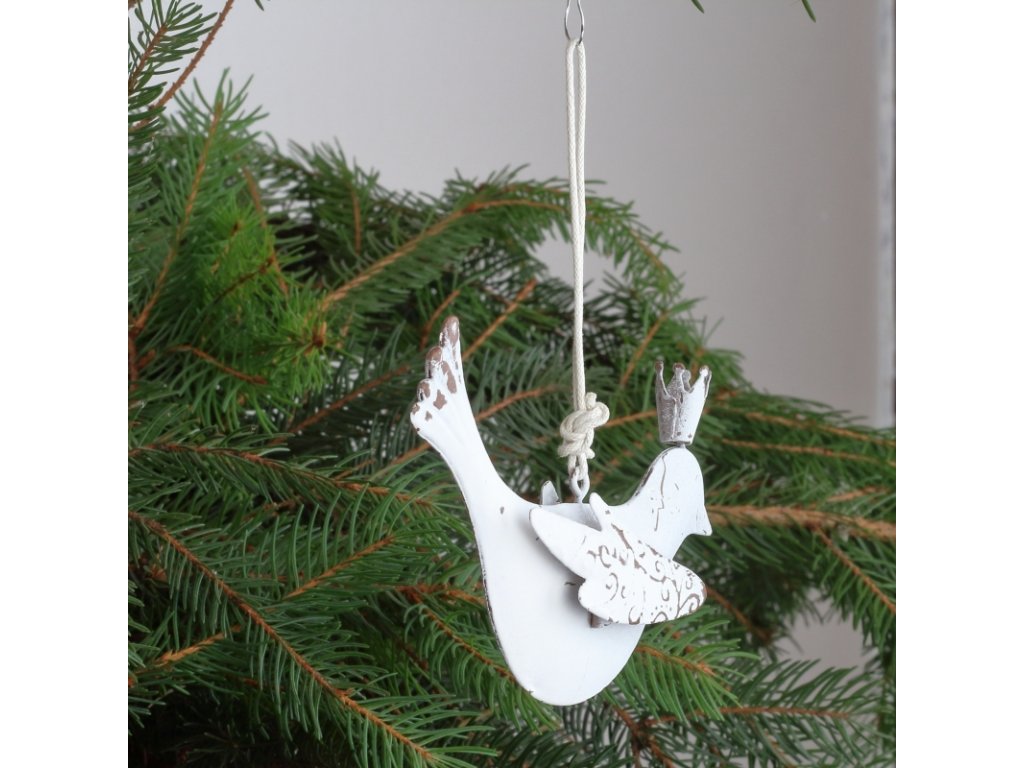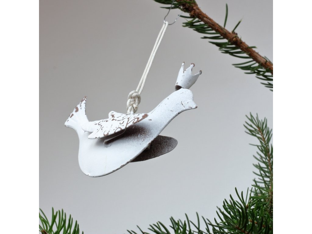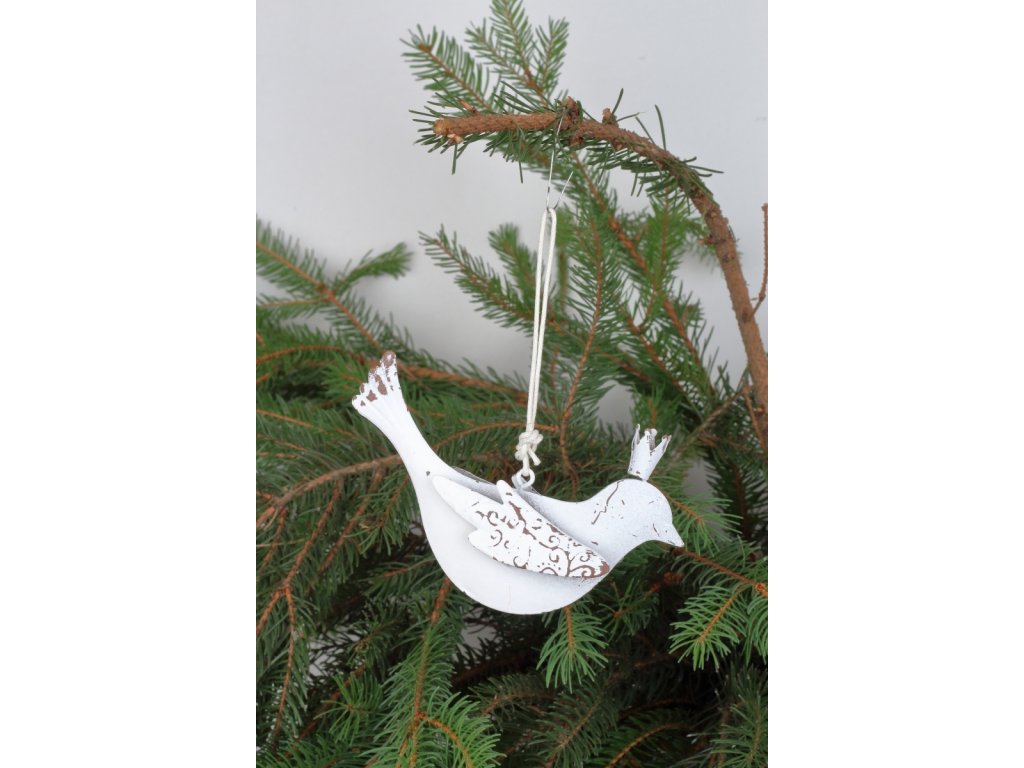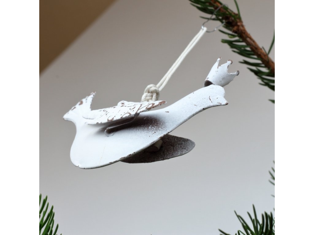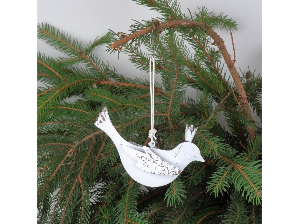 Vánoční dekorace ptáček bílý 14x8x4cm