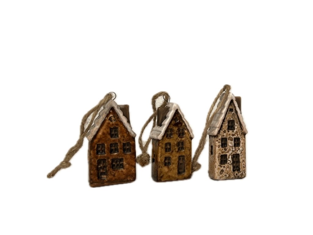 Vánoční dekorace závěsný domeček 3x2x7cm Typ C