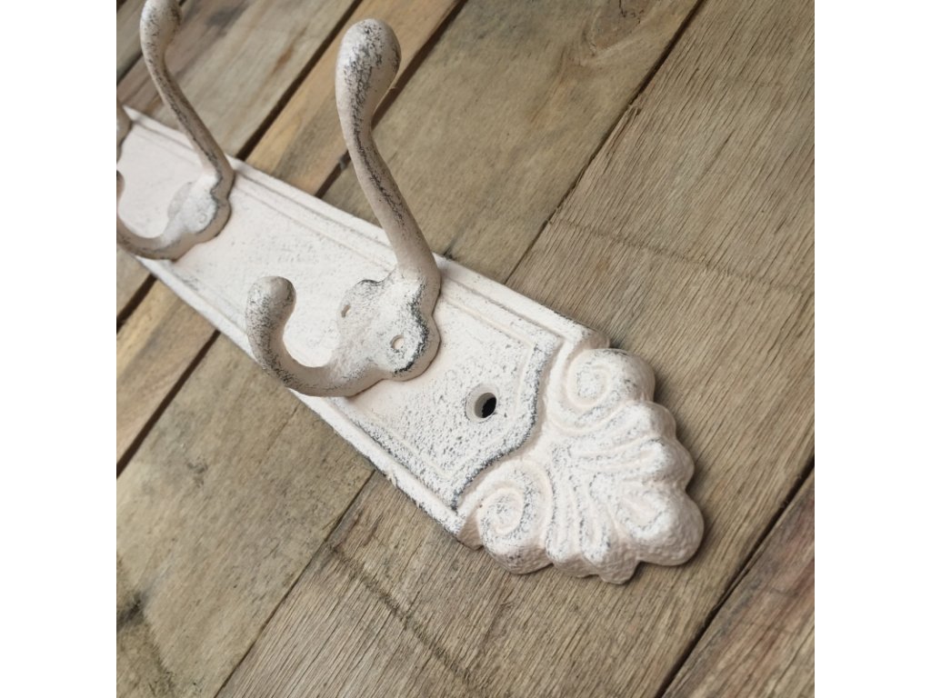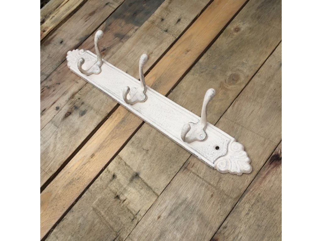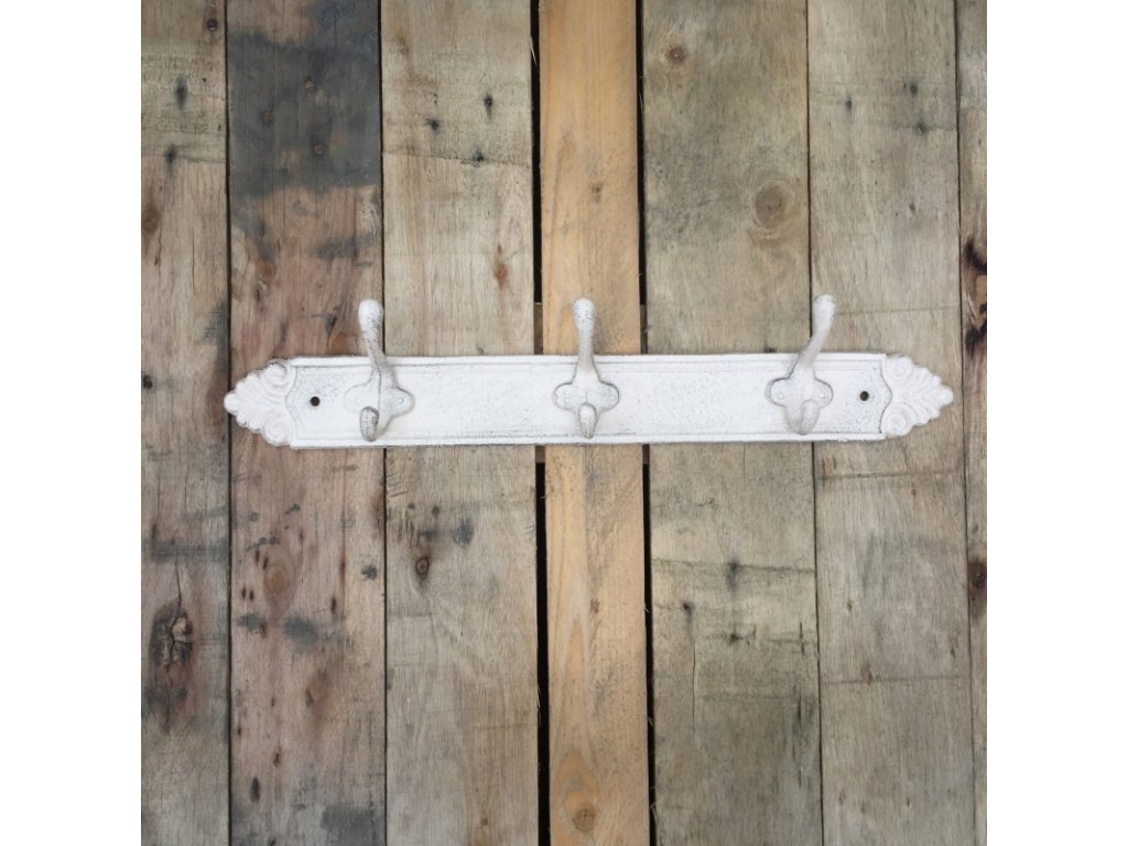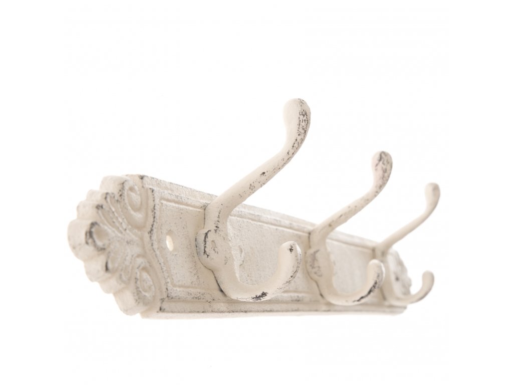 Věšák na oblečení se třemi háčky bílý s patinou 43x7x6,5cm