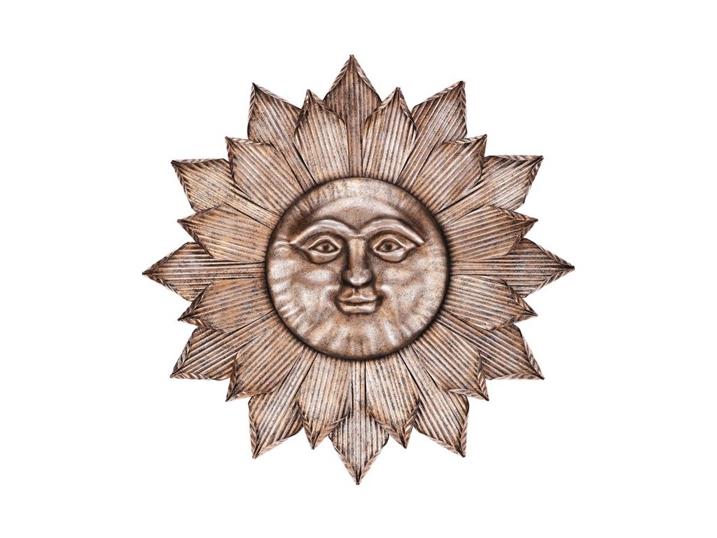 Kovová dekorace na zeď v podobě slunce s obličejem v šedém provedení, přidá vašemu prostoru originální a uklidňující prvek. Decentní barva a propracované detaily z ní dělají ideální doplněk pro interiéry i venkovní prostory, který vám přinese harmonii a pohodu.Doplňkové parametry