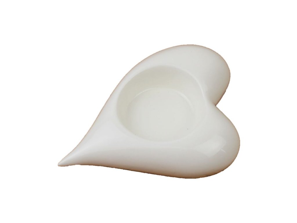 Svícen ve tvaru srdíčka na čajovou svíčku. Rozměry: 11,7 x 9 x 3,3 cm. Materiál: keramika. Barva: bílá. Upozornění: Nenechávejte zapálené svíčky bez dozoru. Dekorace je určena do interiéru. .Doplňkové parametry