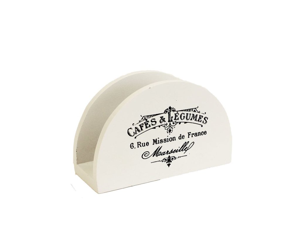 Stojánek na ubrousky. Rozměry: 12 x 4,5 x 7,5 cm. Materiál: dřevo. Barva: bílá. Údržba výrobku: Utřít hadříkem.Doplňkové parametry