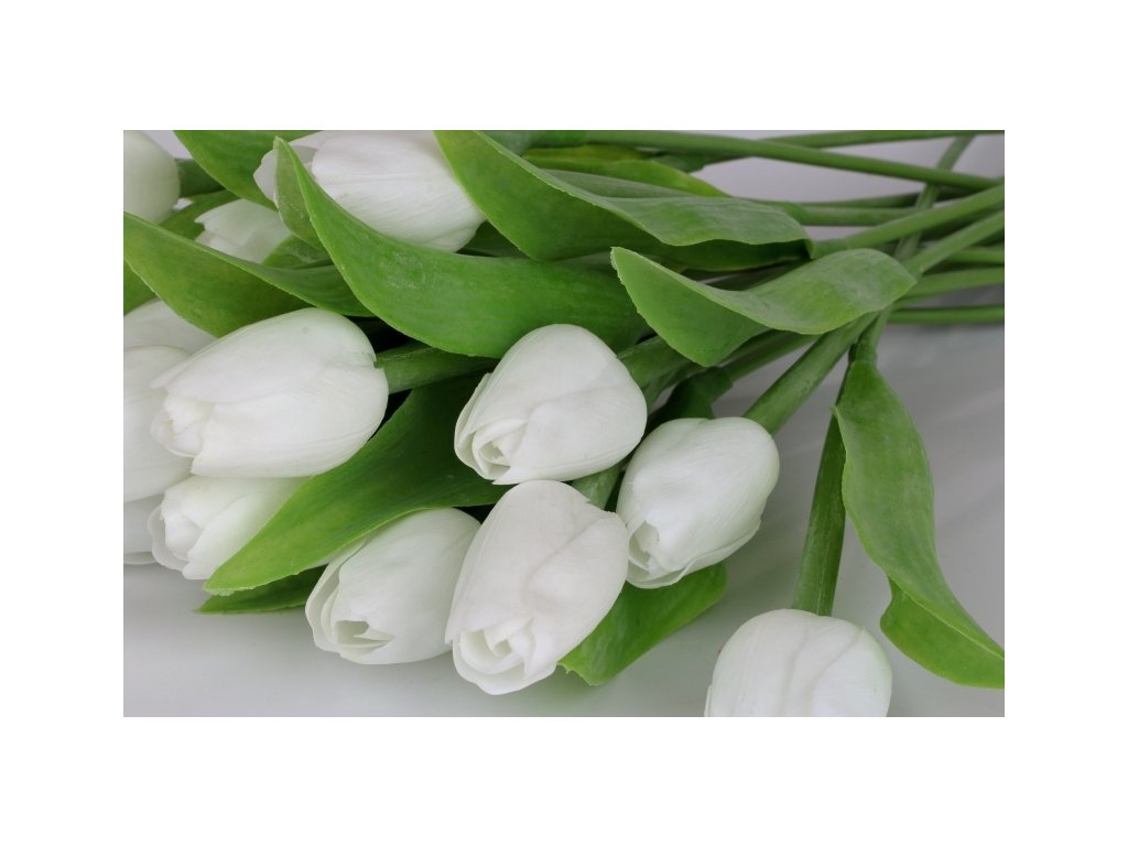 Umělé tulipány bílé 40cm jsou jako živé. Od rostlých tulipánů jsou téměř k nerozeznání.