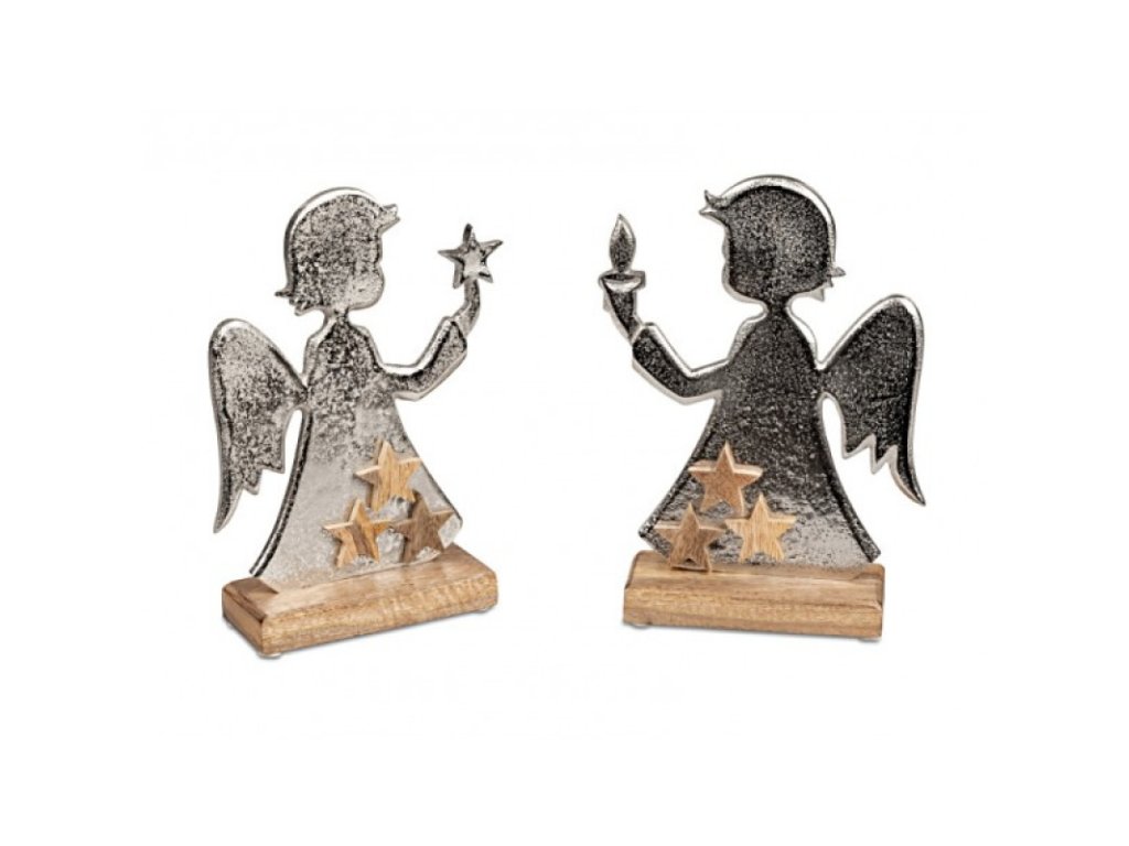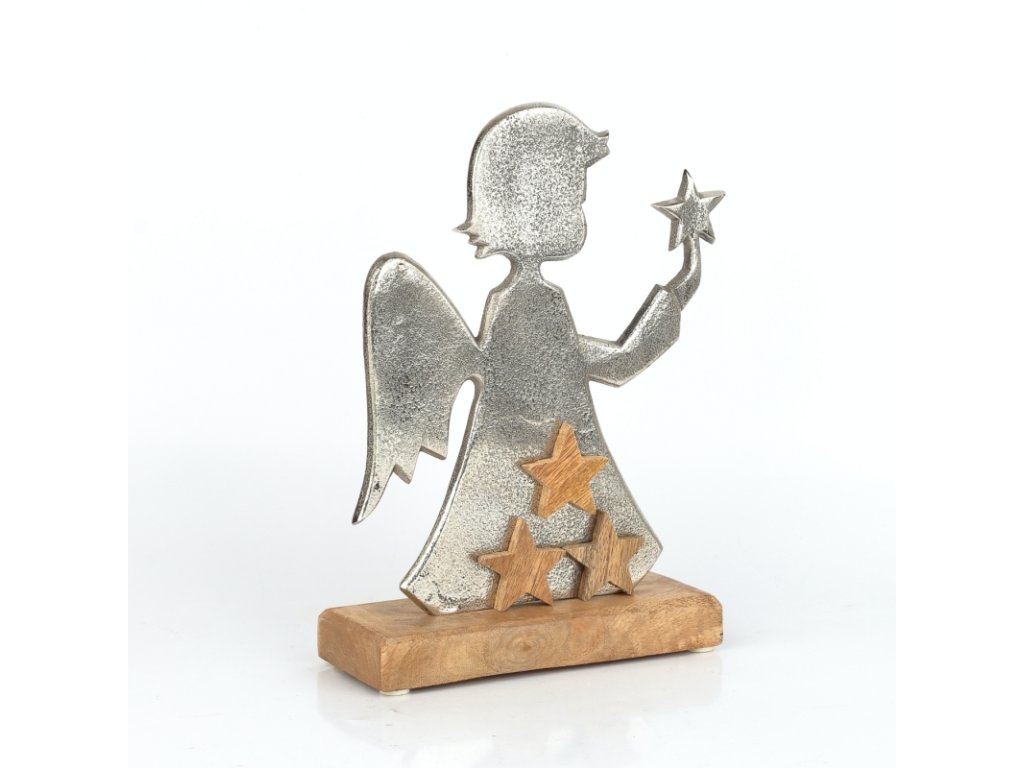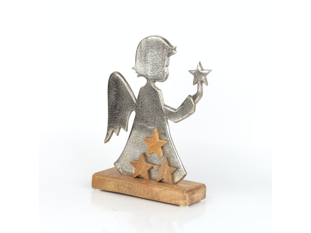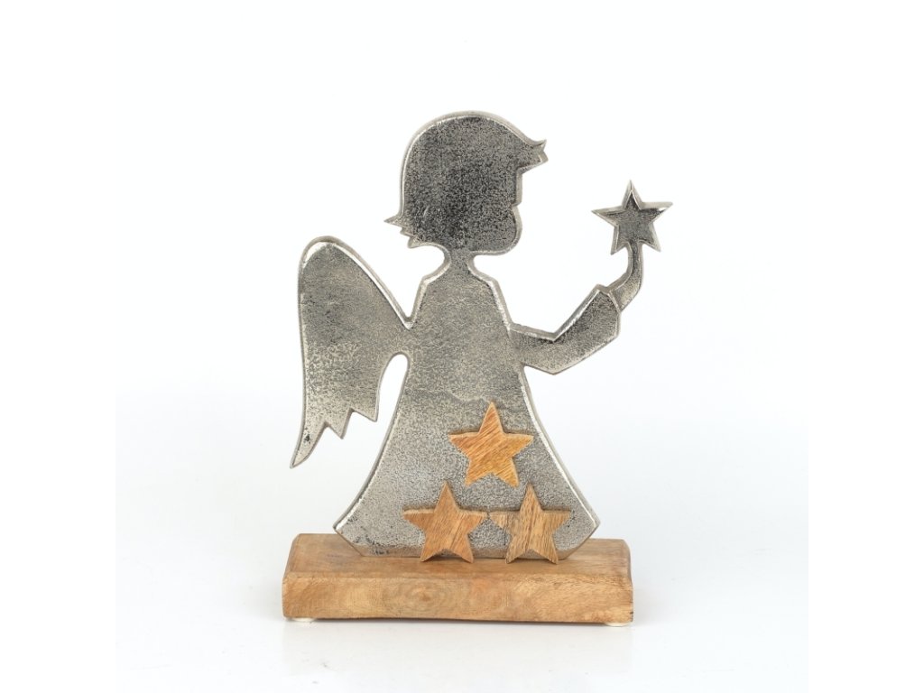 Vánoční dekorace stříbrný anděl s vánoční hvězdou. Vánoční dekoraci lze postavit na krbovou římsu, parapet, nebo komodu.