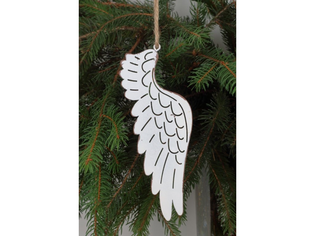 Vánoční dekorace Kovová křídla 18 cm – křídla, která neviditelně, ale neodvolatelně promění obyčejný stromeček v místo, kde se snoubí teplo domova a jemné kouzlo andělské přítomnosti. Jemně tvarovaný kov, matný povrch a štíhlý profil – to vše, aby při každém bliknutí světýlek vykouzlila pocit něhy a vzpomínek, které zahřejí u srdce.