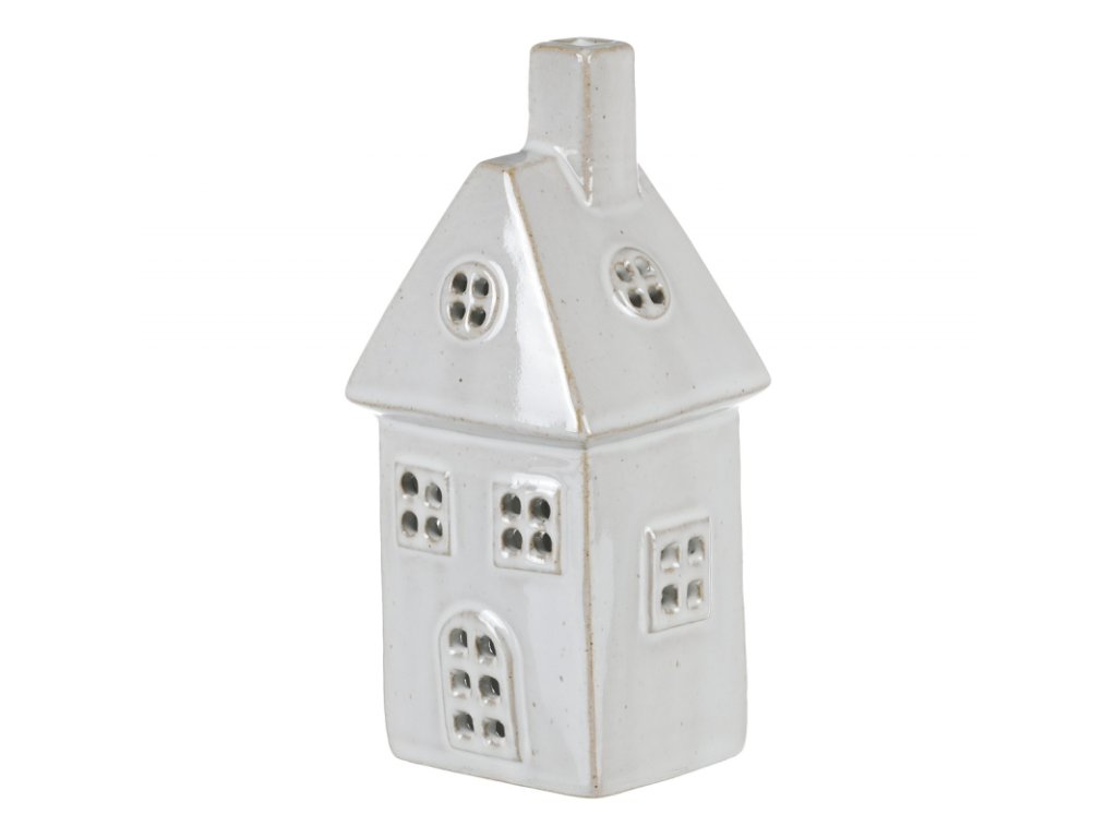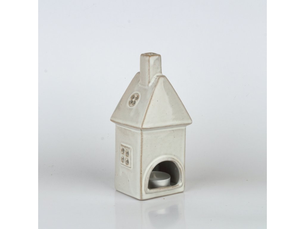 Vánoční domeček na čajovou svíčku, vyrobený z porcelánu.