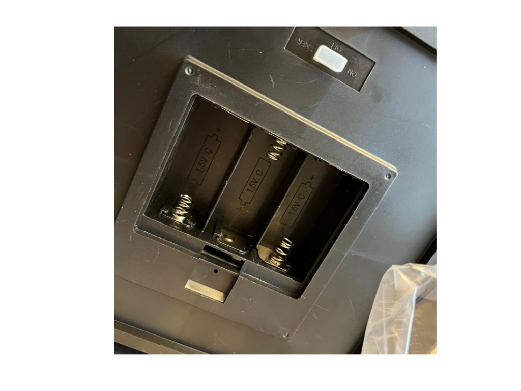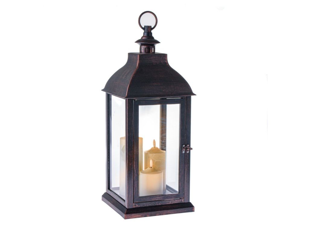 Osvětlení venkovní lucerny zajišťují tři baterie, které jsou ve spodní části, uzavřené krytem a vypínačem, který je chráněný proti vlhkosti.