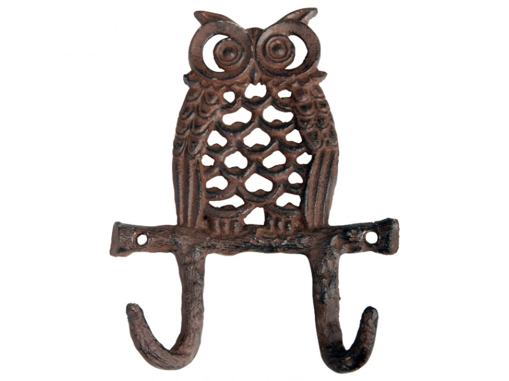 Věšák do předsíně dvojháček s motivem sovičky z litiny.