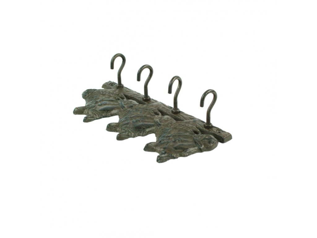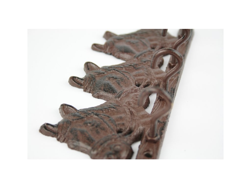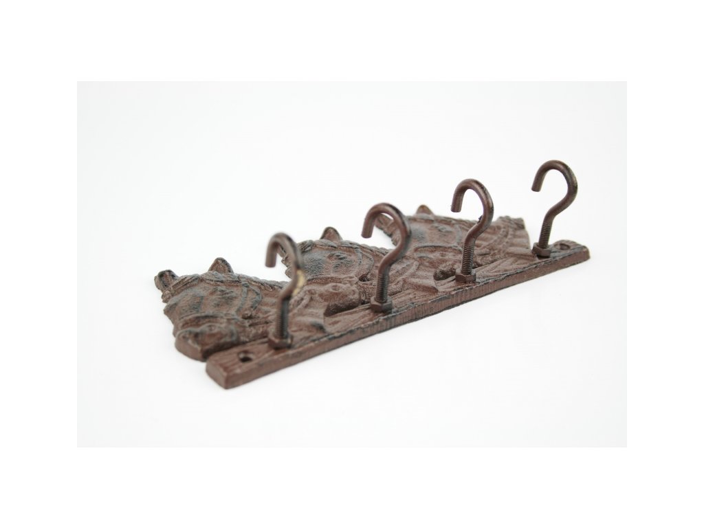Věšák je vyrobený z kvalitní litiny a je vybaven čtyřmi háčky.