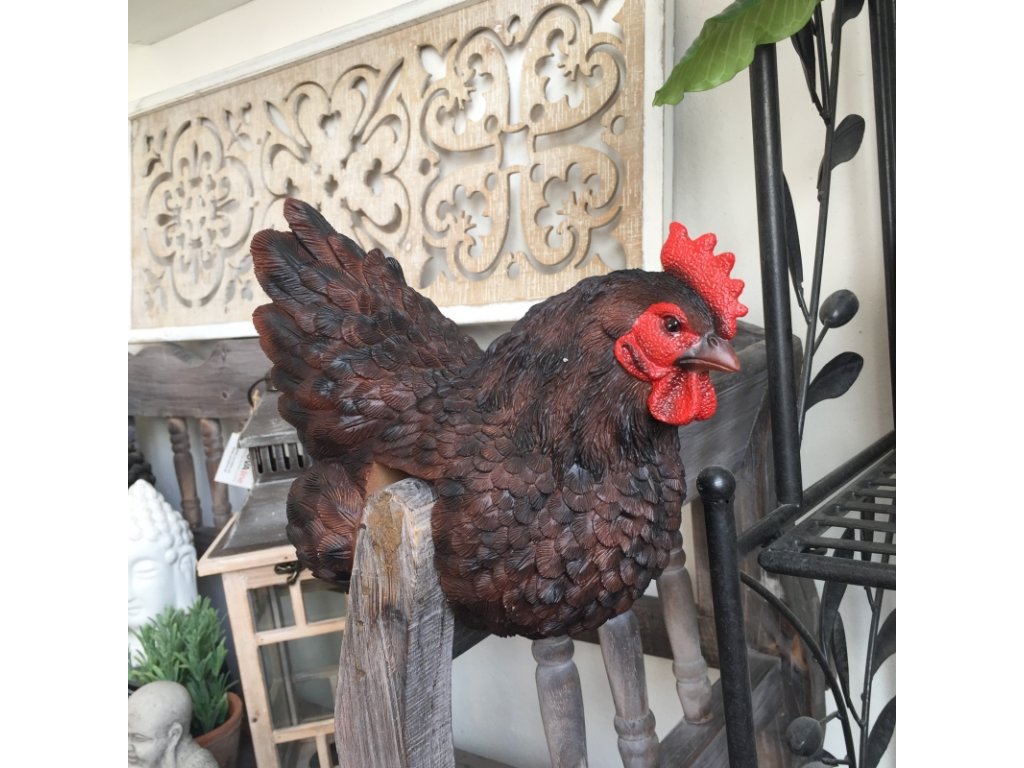 Zahradní sochy Slepice na plot sedící červená 21x17cm