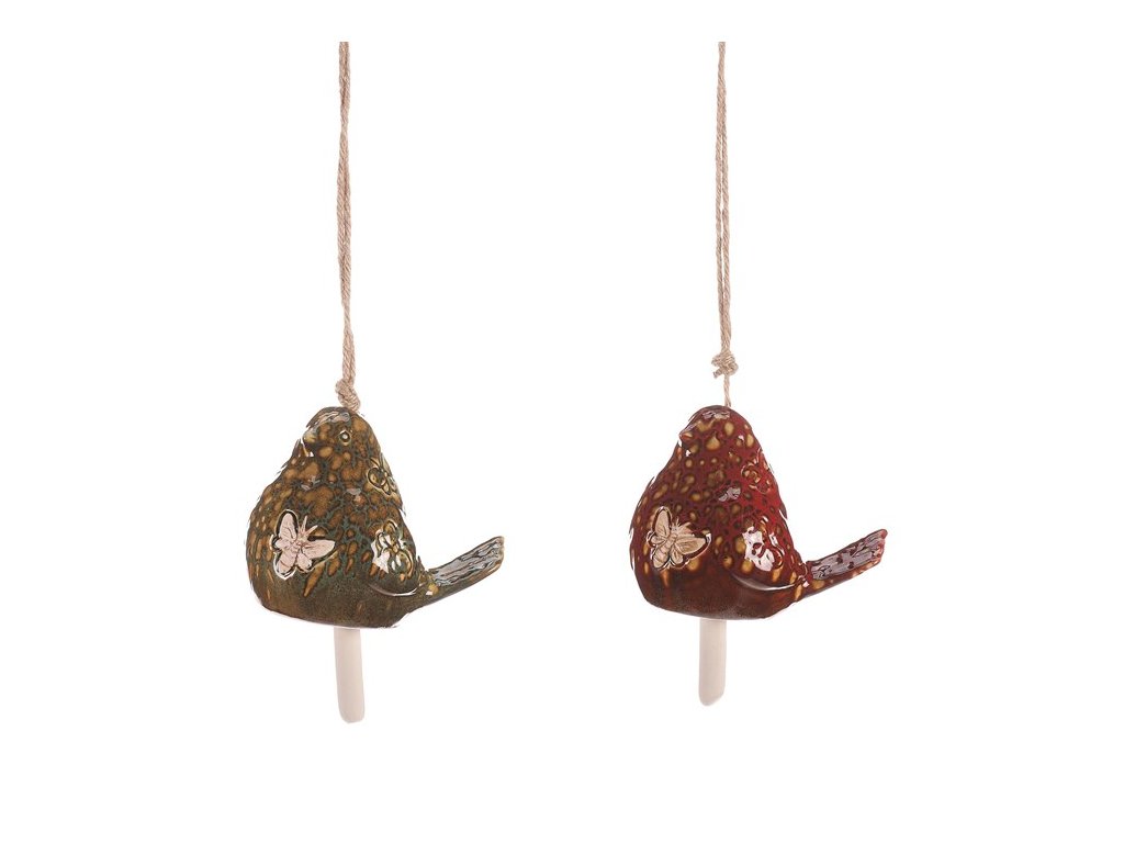 Keramický zvonek ve tvaru ptáčka je jemnou a stylovou ozdobou, která potěší každého milovníka přírody. Mix 2 druhů přináší krásné varianty designu, které snadno zavěsíte pomocí provázku. Ideální doplněk na zahradu, terasu nebo jako dekorace do interiéru.Doplňkové parametry
